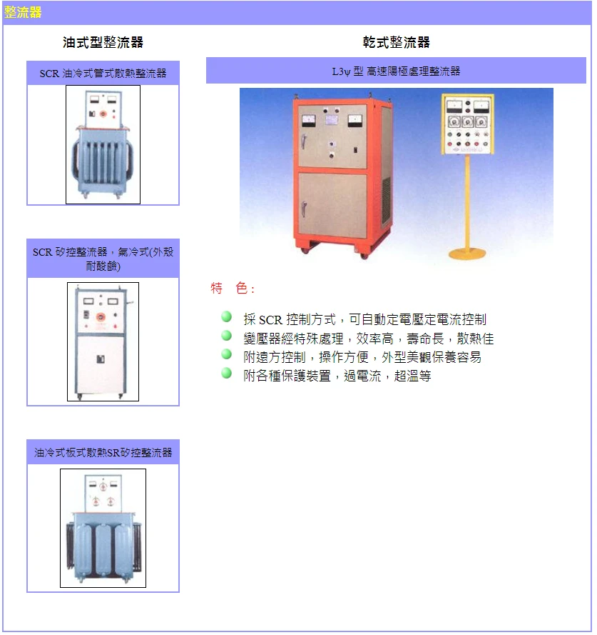 1. 採 SCR 控制方式,可自動定電壓定電流控制